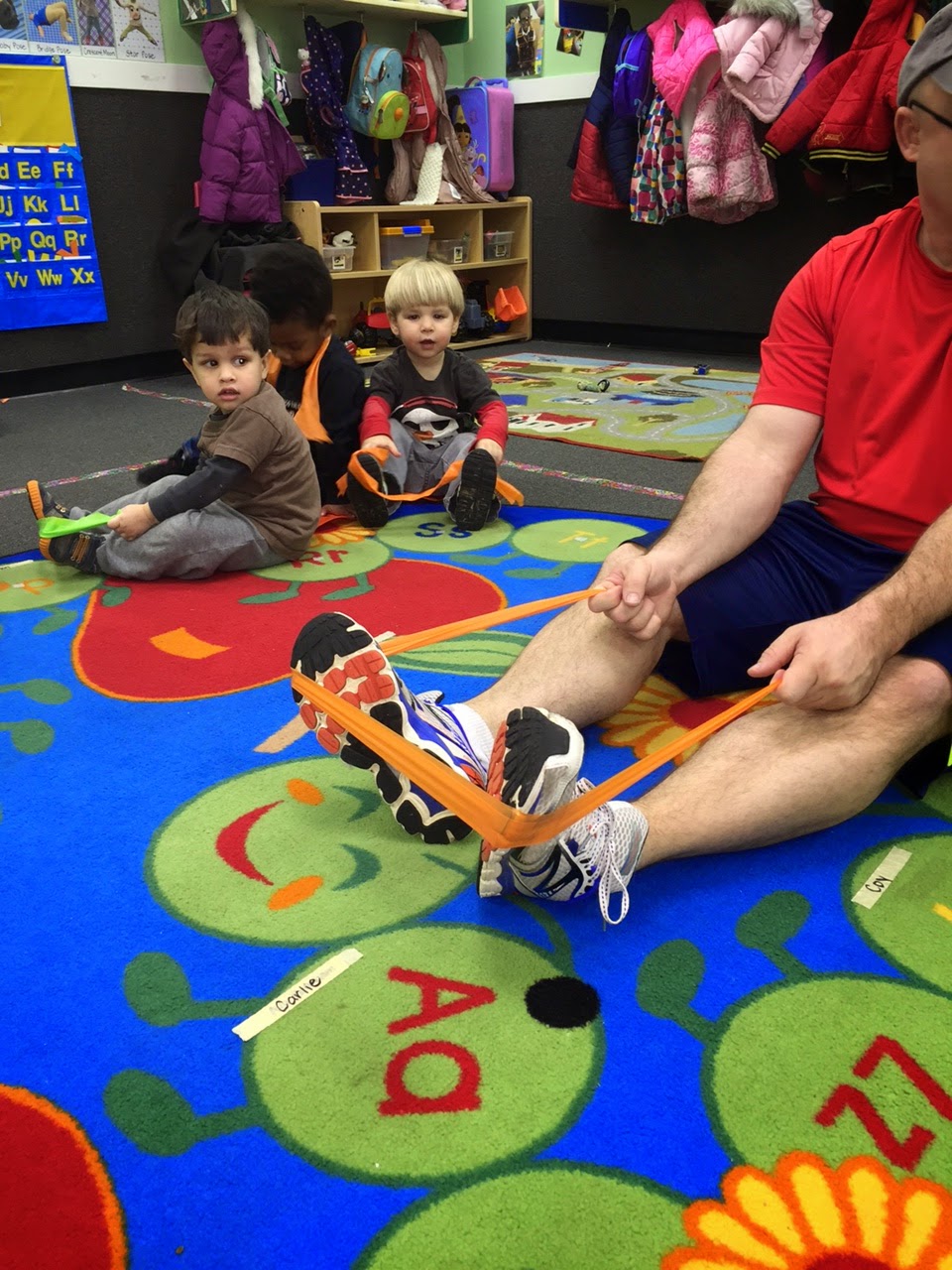 Using our feet to stretch.