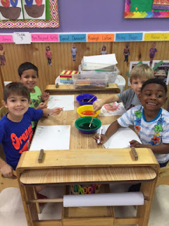 Our Pre-K 2 class explored their senses with Jell-O painting. They used different colors and flavors to experience sight and smell of each different one. They then made beautiful pictures to hang up where they could continue to experience each individual smell by using a scratch and sniff method.